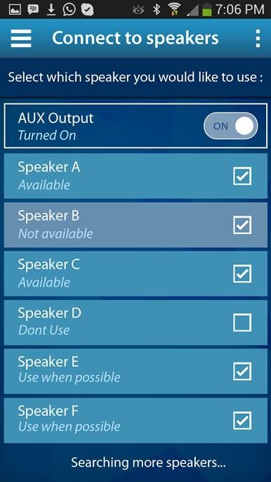 To set it up, you simply launch the app. The app will find your mBox and show you a list of Bluetooth speakers that it can see. Just tick the ones you want to play music from and you’re done! mBox will remember it’s settings until you decide to change them.