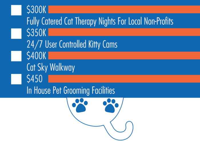 9 LIVES. Sponsor a cat of your choice for a full year. This money will go directly to the cats vet visits, food, toys, and happiness. We will credit you on the cats online profile , plus you will be automatically be added to the pre-grand opening parties and VIP member for a full year to come and see your sponsored kitty as much as you please. Each cat can have multiple sponsors.