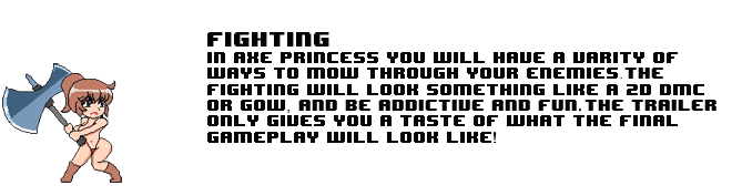 Axe Princess is an fantasy, action, beat'em-up game. It uses 2d animated sprite graphics and aims to be violent, cool and sexy!