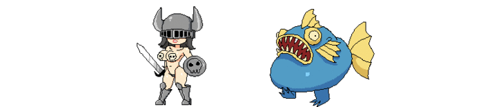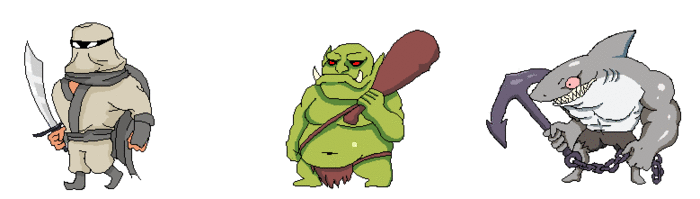What good is a hero without some cool baddies to kill? Above is just a tiny fraction of the enemies you'll cleave through in this game. One of the things that always made a game feel "cheap" and boring was beating up on the same enemies over and over. In Axe Princess we are aiming to create as many varied bad guys as possible. Axe princess will feature traditional fantasy themed enemies along with some cool weird stuff you don't typically see. A shark-man swinging an anchor or a killer pink cannibal just to name a few.