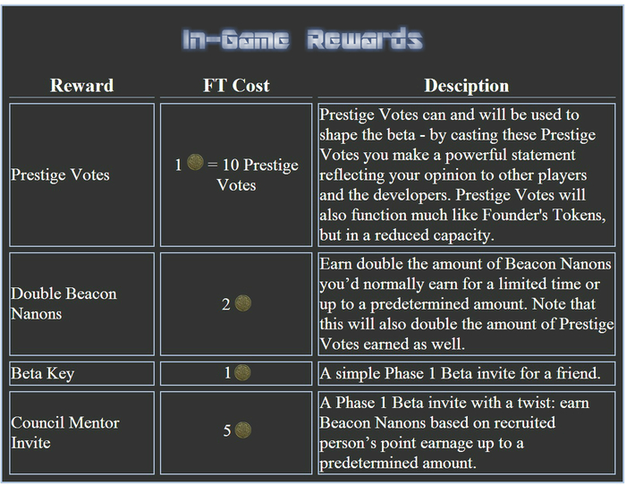 - My estimated delivery date of these tokens is August of 2013. Most rewards mentioned below will be available, but some will have to wait until their components are complete. For instance, you will be able to cash in FT's for Prestige Votes, but the tournament will have to wait until the Beta is nearly complete.