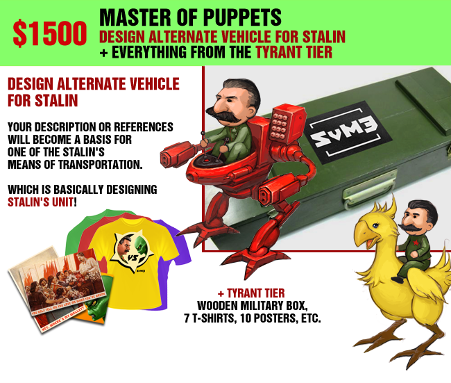 DESIGN ALTERNATE VEHICLE FOR STALIN (your description/references will become a basis for one of the Stalin's means of transportation: which is basically like designing Stalin's unit) + TYRANT TIER (Military Box Edition + stuff)