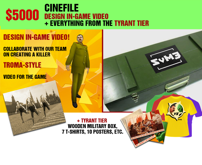DESIGN IN-GAME VIDEO (collaborate with our team on creating a killer Troma-style video for the game) + TYRANT TIER (Military Box Edition + stuff)