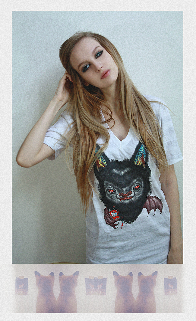kawaii japanese kabuki doll key chain, special thanks on website , your name in a thank you video, 2 EP downloads: IDORU and RAGE KITTEN XIII, a personal adorable hand written thank you letter/package (you'll feel as if you are receiving a present on a holiday! that's how neat we make them), a limited edition Vladimere or Edgar t-shirt, Vladimere or Edgar sweatshirt, vintage limited print t-shirt, eyeball bow hair accessory, one of Dakota's exclusive design/graphic (she will design one for this special occasion) on a card signed by the both of us girls! A skype chat, Ichat session, or Stickam session with Dakota and I. We can talk, create new music, creative input, or just hang out AND one of a kind beautiful antique KND Bunny Blue's Meltdown Piece 38" x 26.5" - piece of art by Dakota (KotaKoti):