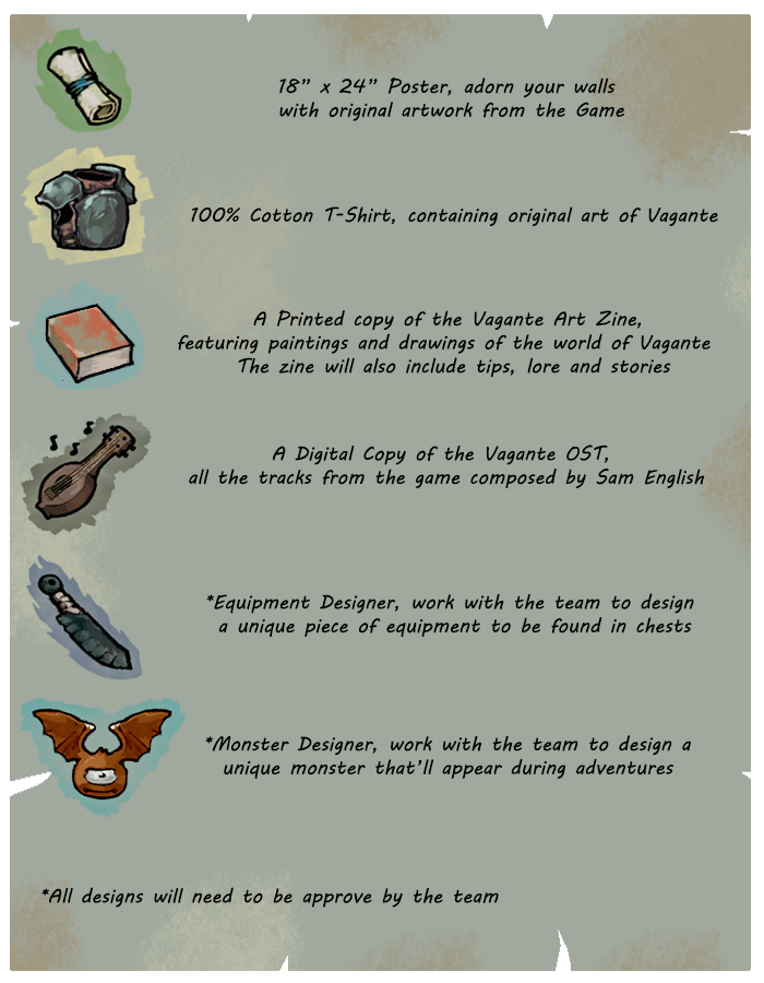 A copy of Vagante when it is released, as well as a download of the Vagante OST when it's released. All higher reward tiers include a copy of the OST.