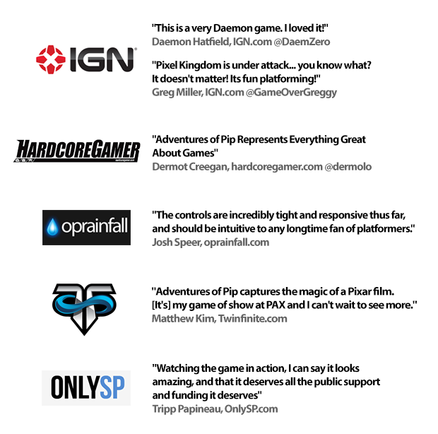 Twitter: @tictocgames | Facebook: AdventureOfPip | Steam Greenlight
