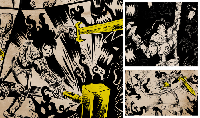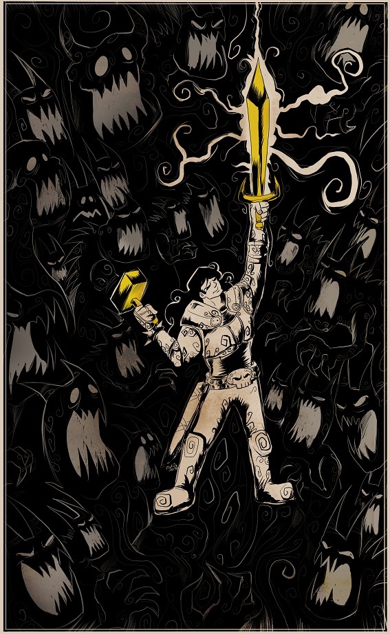 = TIER 5.a - SPONSOR THE HERO = You'll help sponsor the comic's leading character. The unnamed hero roams the land with his brother to rid their world of the foul demons and final bosses. Using a mighty sword and hammer he destroys any foe that stands in his way. Includes rewards from tiers 1 - 4.