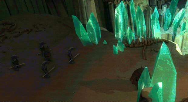 The next GIF for example is showing, how to make combos in the combat by using your Dwarves' stack of actions, attracting a bunch of Whistlers with Shadow and kick them out the cliff with the Forcer's bombard! (Early gameplay footage! It's not even the alpha version)
