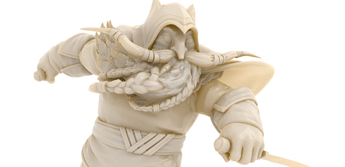 Not a very young dwarf, but there is life in the old dog yet! He’s an engineer, a real fan of mechanics, so in the game you’ll use him as a master of technical abilities such as making and setting traps,and building turrets and fortifications. His right arm is also mechanical, to hold the powerful bombardshotgun.